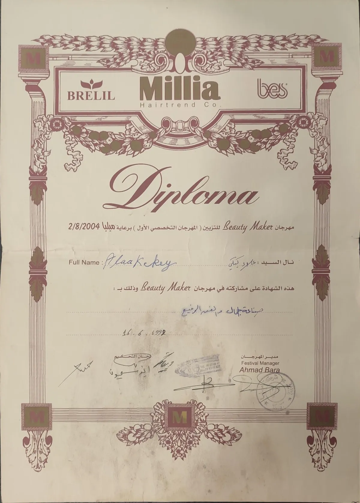 ALAA'S WORK EXPERIENCE, CERTIFICATES & LICENSES